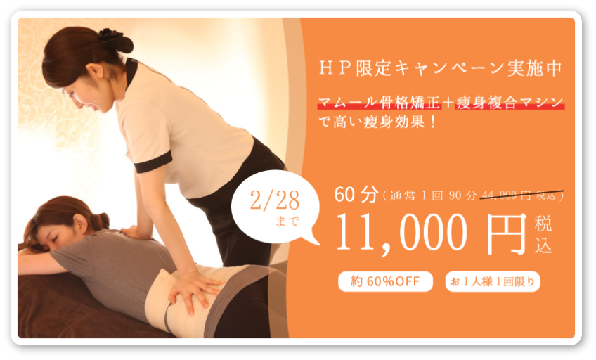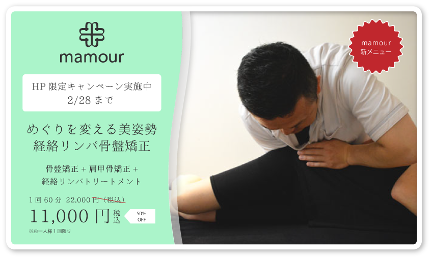 mamour(マムール)は、骨盤矯正と小顔矯正を行う美容矯正サロンです。